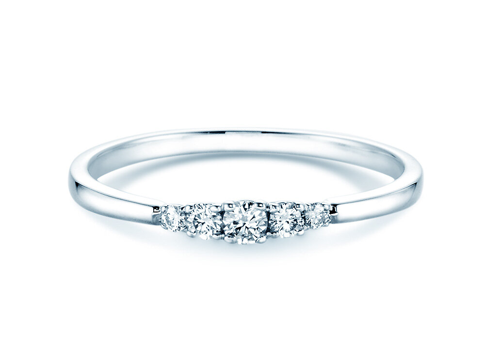 Une bague et une promesse. Cette délicate bague 5 Diamonds est sertie de cinq diamants éclatants. La position des pierres précieuses offre un aspect harmonieux et équilibré à cette bague de fiançailles en or blanc. Une véritable œuvre d'art. Idéale pour les amatrices d'élégance et de design intemporel. Notre recommandation: la bague 5 Diamonds en or blanc ou en platine exclusif.
