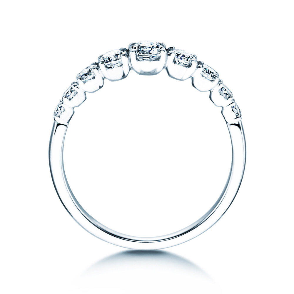 Le modèle 9 Diamonds équilibré et élégant est orné de neuf diamants étincelants de tailles croissantes jusqu'au centre supérieur de l'anneau. Du plus bel effet sur toutes les mains, parfaitement combinable avec d'autres bijoux avec son design moderne et intemporel.