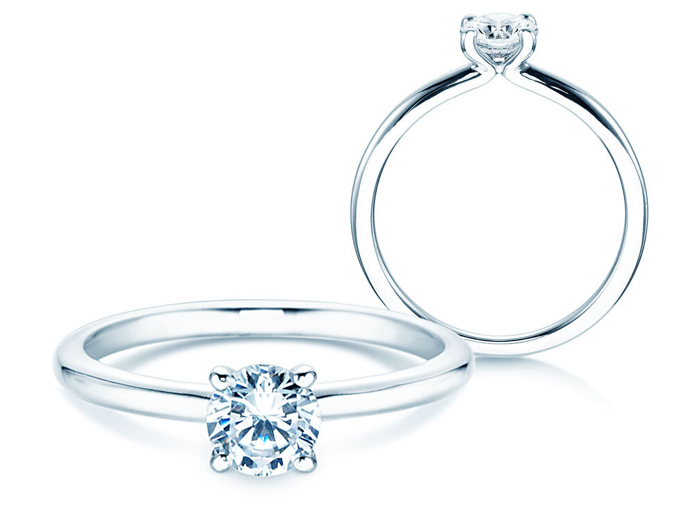 La nouvelle bague de fiançailles Classic 4 réunit toutes les propriétés importantes d'une bague de fiançailles classique et moderne en argent: son anneau présente un design filigrane ni trop étroit ni trop épais, parfaitement assorti à la taille du diamant.