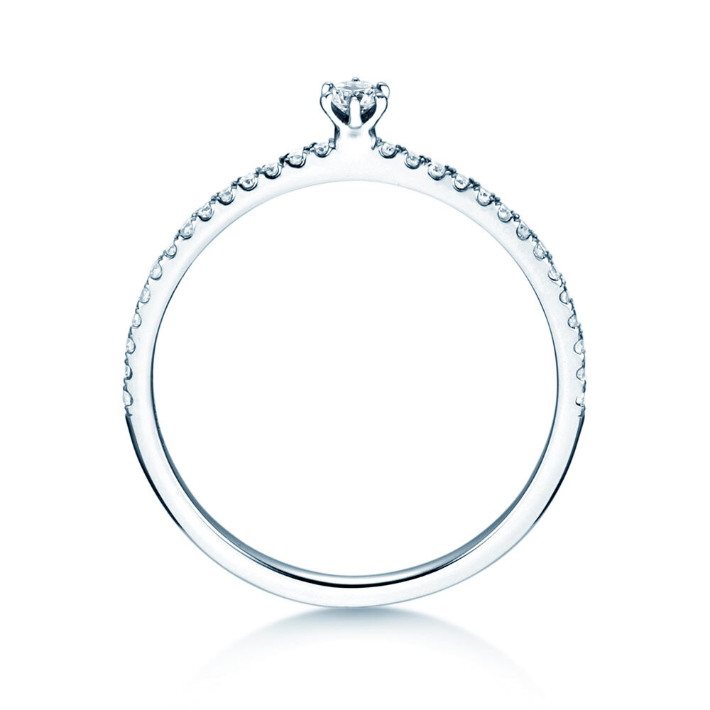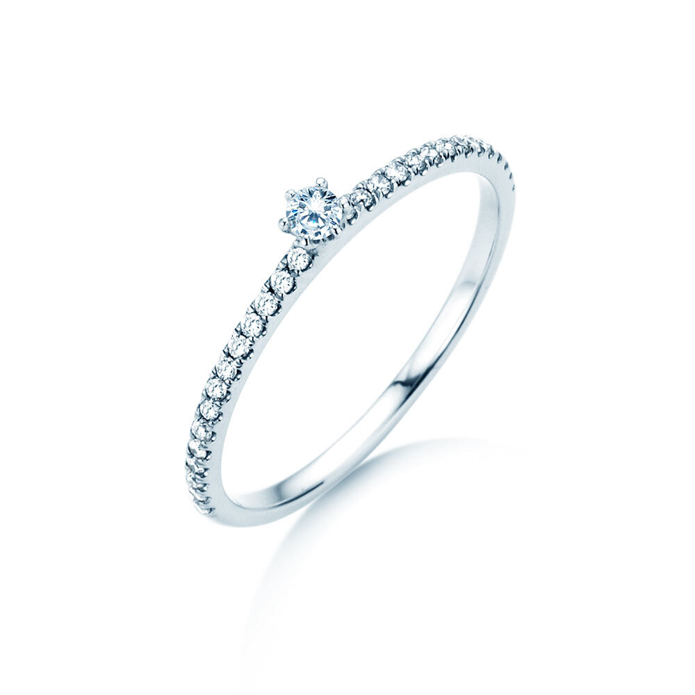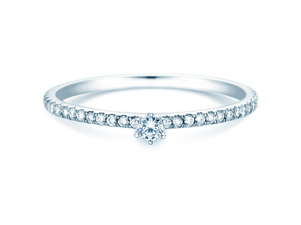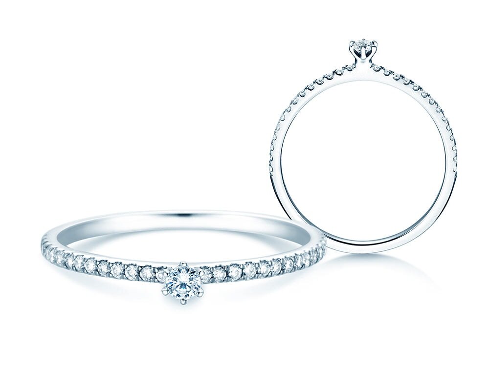 La sertissure de diamants le long de l'anneau, appelé un pavé, donne leur design élégant à ces bagues de fiançailles. La bague solitaire Classic en or blanc avec pavé fait partie de nos modèles les plus appréciés, c'est pourquoi nous proposons ce chef-d'œuvre dans 3 différentes tailles de brillant pour l'adapter à chaque budget.