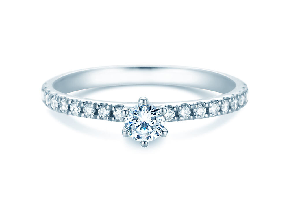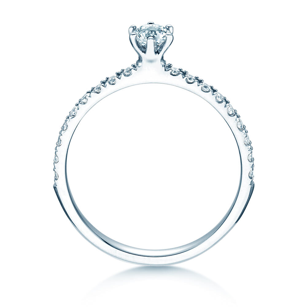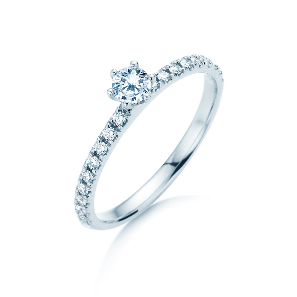 La sertissure de diamants le long de l'anneau, appelé un pavé, donne leur design élégant à ces bagues de fiançailles. La bague solitaire Classic en or blanc avec pavé fait partie de nos modèles les plus appréciés, c'est pourquoi nous proposons ce chef-d'œuvre dans 3 différentes tailles de brillant pour l'adapter à chaque budget.