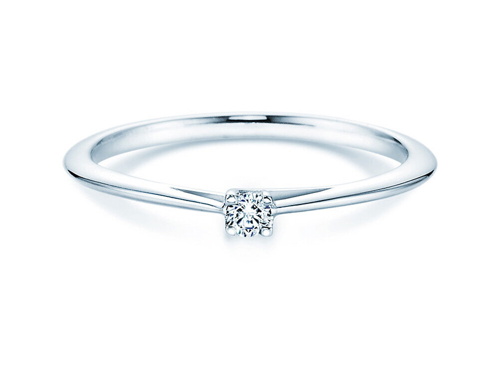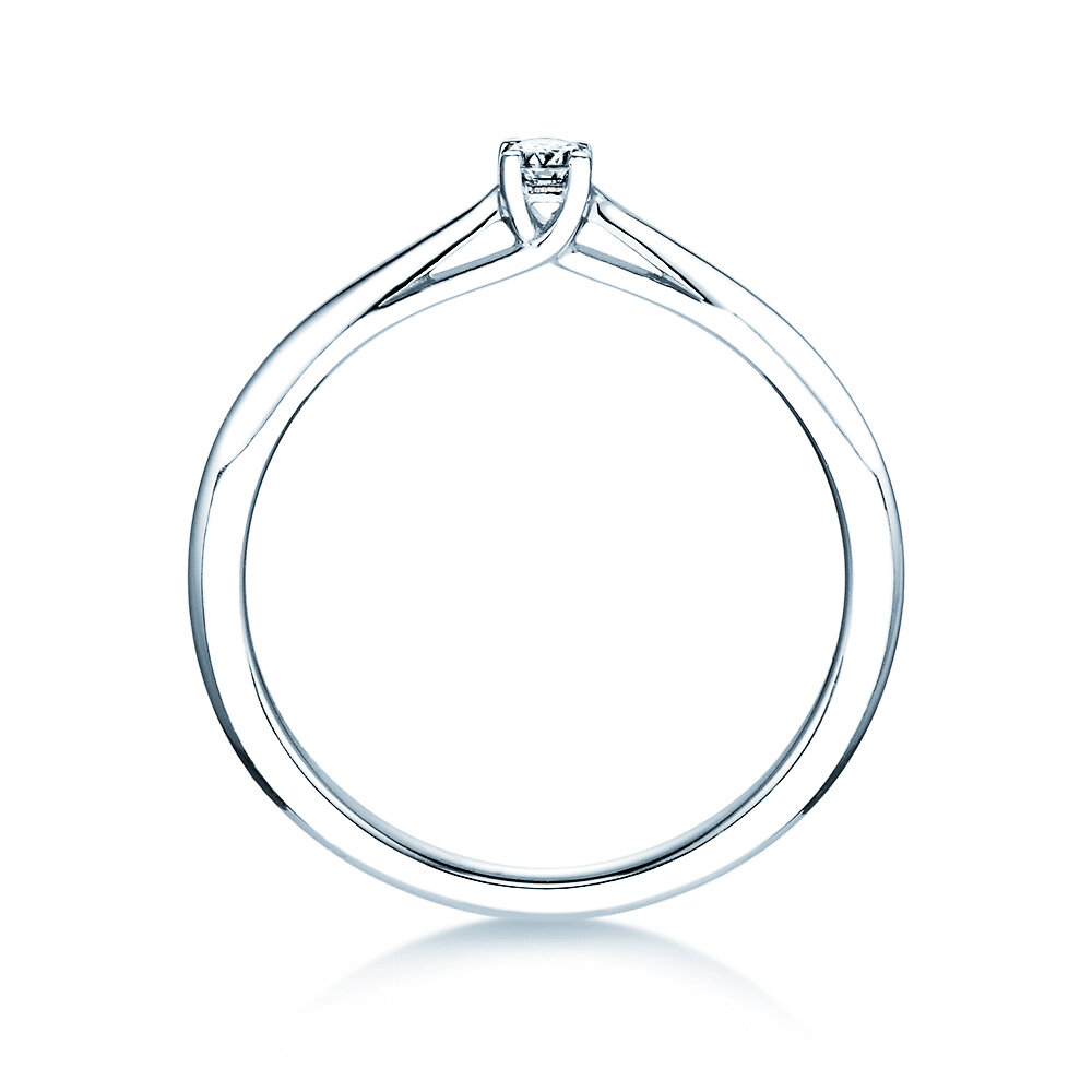 Bague solitaire Delight - discrète dans sa forme, classe et branchée dans sa mise en scène. Choisissez un modèle avec petit ou gros diamant selon votre budget dans l'aperçu. La bague solitaire Delight existe également en argent sobre ou en platine exclusif.