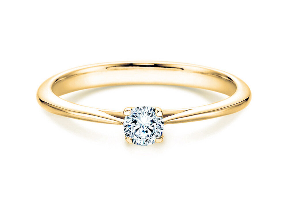 Bague solitaire Delight - discrète dans sa forme, classe et branchée dans sa mise en scène. Choisissez un modèle avec petit ou gros diamant selon votre budget dans l'aperçu. La bague solitaire Delight existe également en argent sobre ou en platine exclusif.