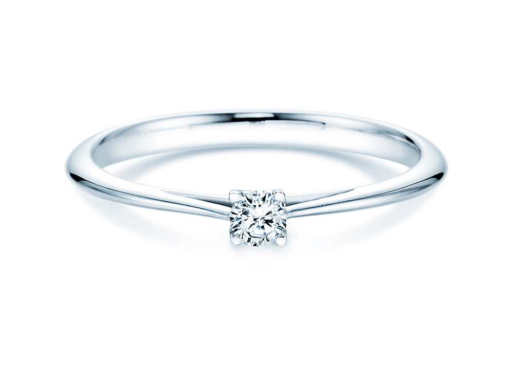 Bague solitaire Delight - discrète dans sa forme, classe et branchée dans sa mise en scène. Choisissez un modèle avec petit ou gros diamant selon votre budget dans l'aperçu. La bague solitaire Delight existe également en argent sobre ou en platine exclusif.