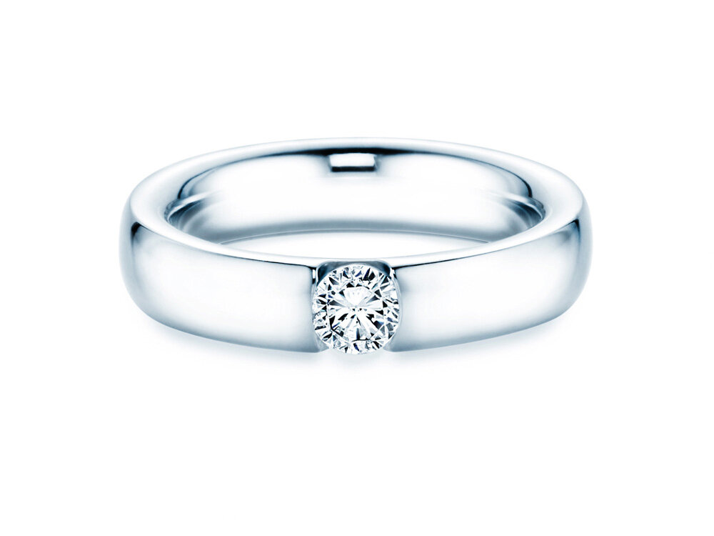 La bague tension moderne Destiny réunit deux avantages différents : son diamant à l'éclat intense est solidement encadré par la sertissure et laisse la lumière le traverser de toutes parts. La brillance du diamant est ainsi optimisée. Les lignes claires et équilibrées de l'anneau complètent le design avec élégance. Choisissez (selon votre budget) un modèle avec petit ou gros diamant dans l'aperçu.