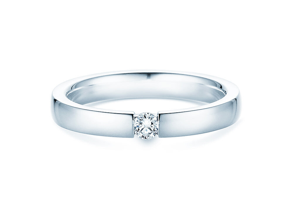 Découvrez maintenant la bague tension Infinity en argent - une bague de fiançailles sobre, ornée d'un diamant. Cette bague tension élégante est un classique pour des fiançailles. La sertissure simple de l'Infinity offre un maximum de lumière au brillant pour diffuser un éclat optimal.