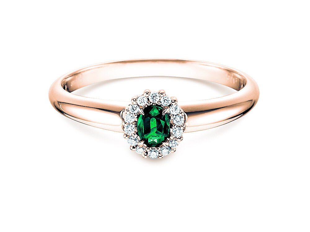 14K or rose avec émeraude 0,25ct et diamants 0,06ct
