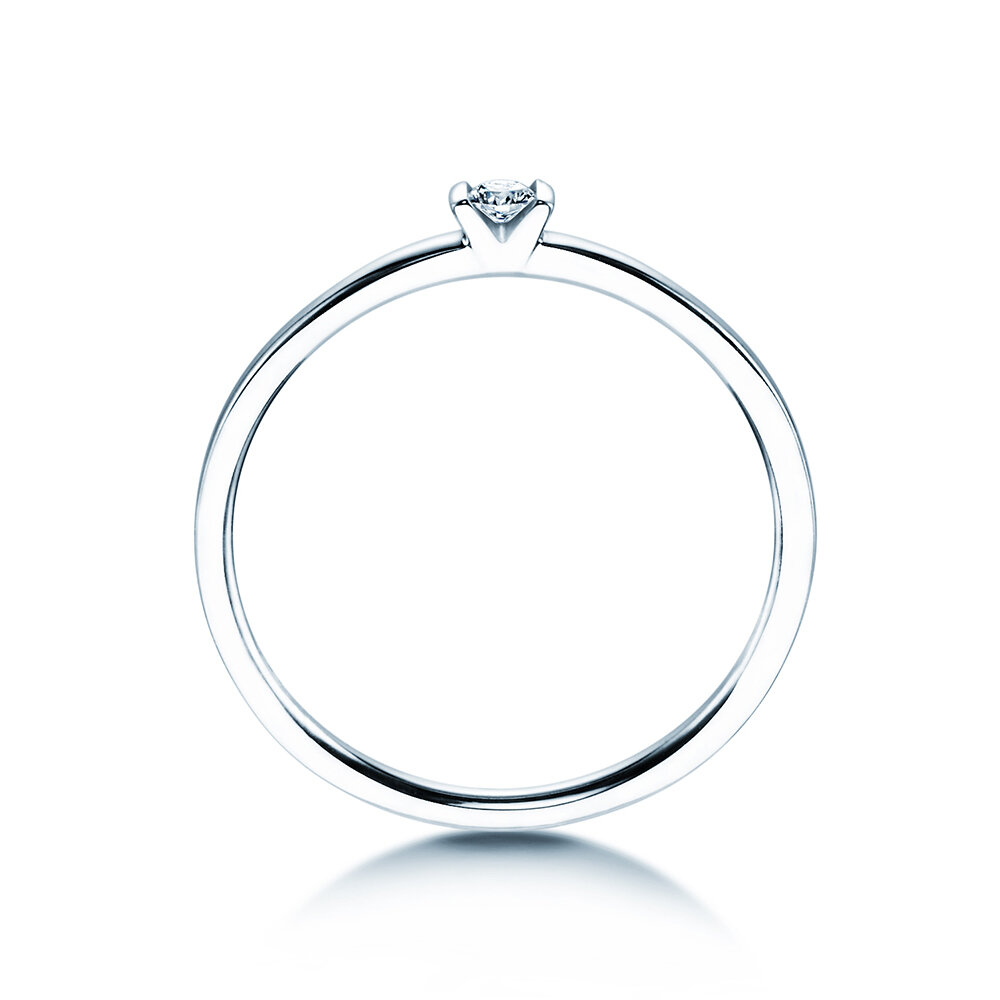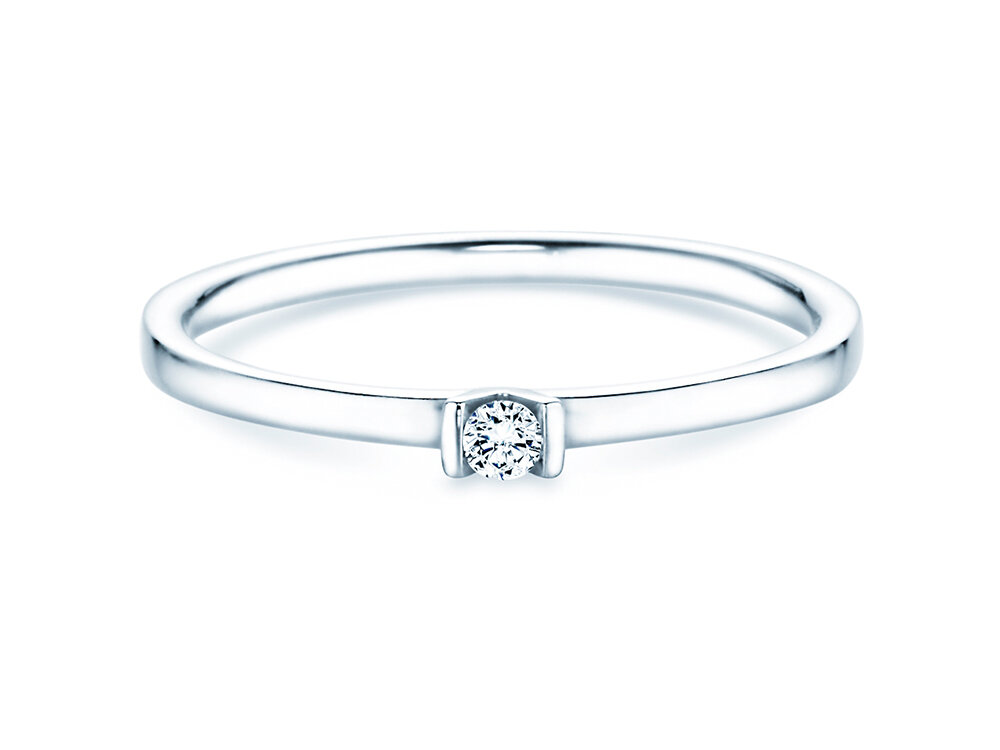 Les bagues de fiançailles Love sont les dernières arrivées dans notre gamme et se démarquent par la sertissure raffinée du diamant. Le diamant est solidement serti des deux côtés par une traverse en or blanc raffiné. La série est disponible avec deux tailles de diamant : 0,04 et 0,07 ct, en série limitée.