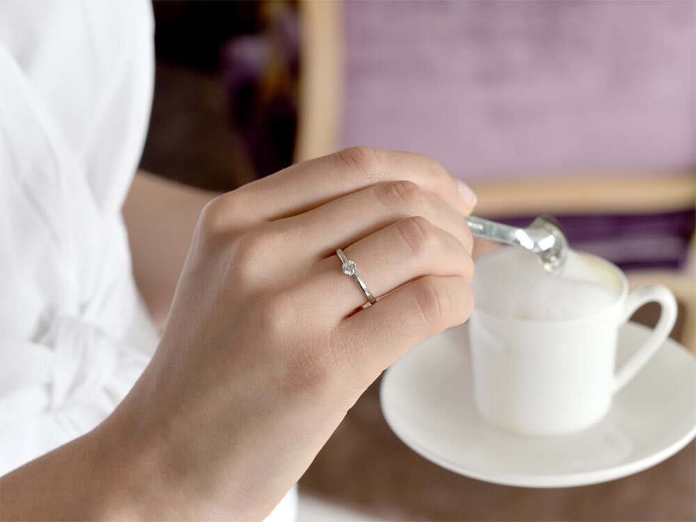 La bague de fiançailles Melody offre un design classique de premier abord. Elle réserve cependant quelques surprises. La sertissure de la bague Melody encadre la pierre centrale, un diamant de haute qualité, avec harmonie. Nous nous sommes efforcés de ne pas produire un anneau au design trop large. Le modèle Melody est la bague de fiançailles parfaite pour les personnes qui recherchent un solitaire minimaliste.