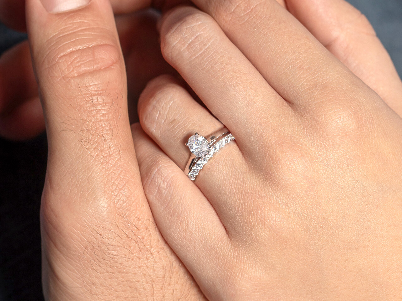 D'une élégance simple, la bague de fiançailles Oval Cut combine un solitaire aux lignes épurées d'une