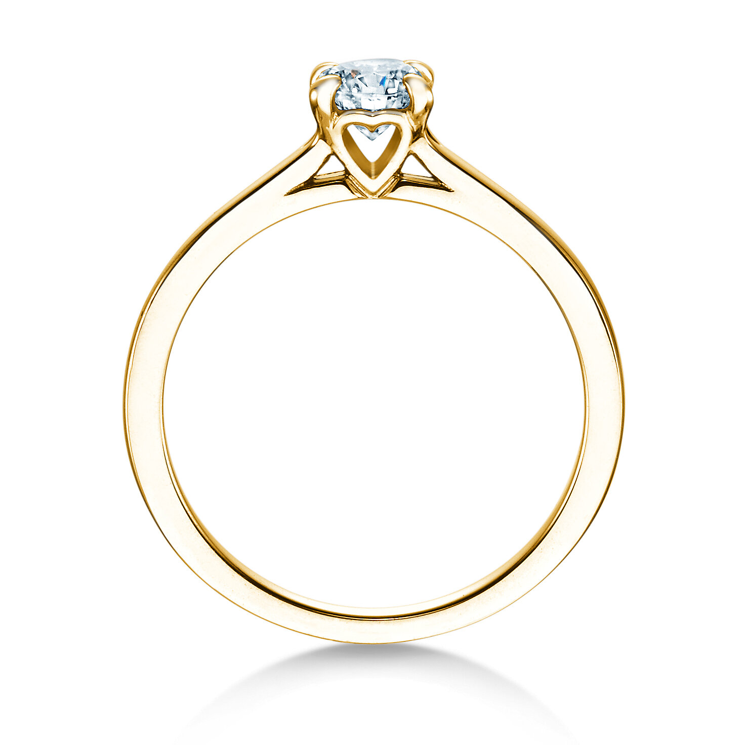 Bague de fiançailles Romance avec chaton à 4 griffes et diamant véritable. Le point fort de la bague solitaire Romance se trouve dans sa sertissure en forme de cœur.