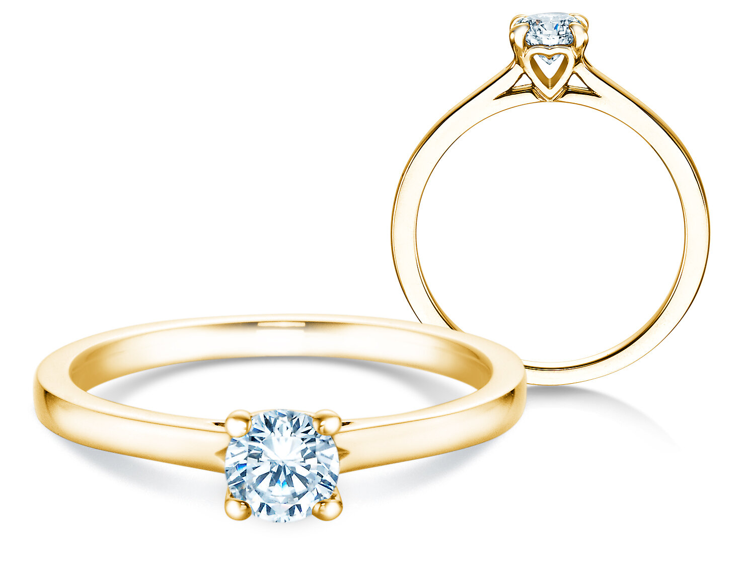 Bague de fiançailles Romance avec chaton à 4 griffes et diamant véritable. Le point fort de la bague solitaire Romance se trouve dans sa sertissure en forme de cœur.