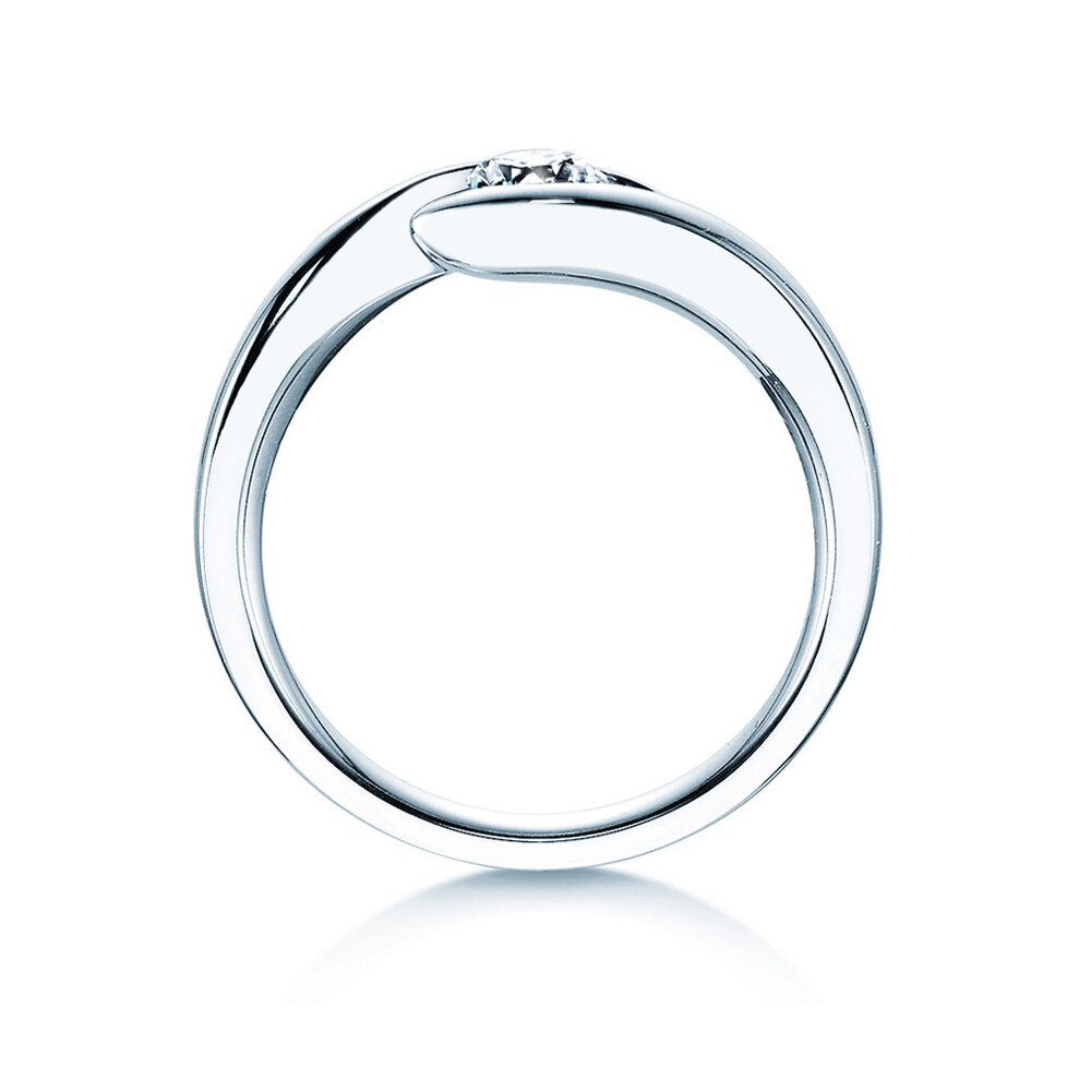 Design élégant, raffiné et unique: la bague tension Twist entoure son diamant comme un inestimable trésor. Nous recommandons l'argent pour cette bague, métal précieux classique pour les bagues de fiançailles. Ajustez la bague à votre budget simplement en choisissant la taille de votre diamant.