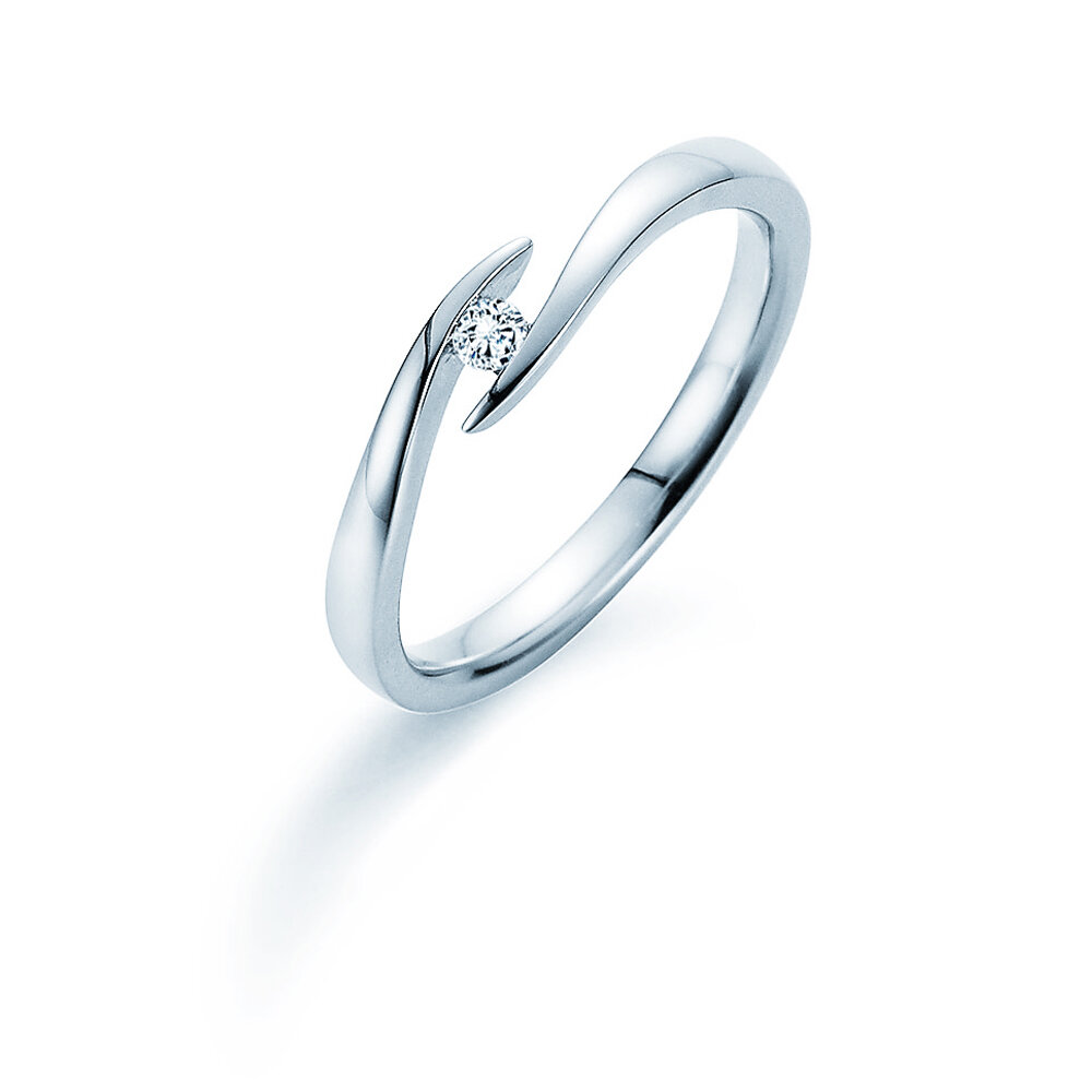 Design élégant, raffiné et unique: la bague tension Twist entoure son diamant comme un inestimable trésor. Nous recommandons l'argent pour cette bague, métal précieux classique pour les bagues de fiançailles. Ajustez la bague à votre budget simplement en choisissant la taille de votre diamant.