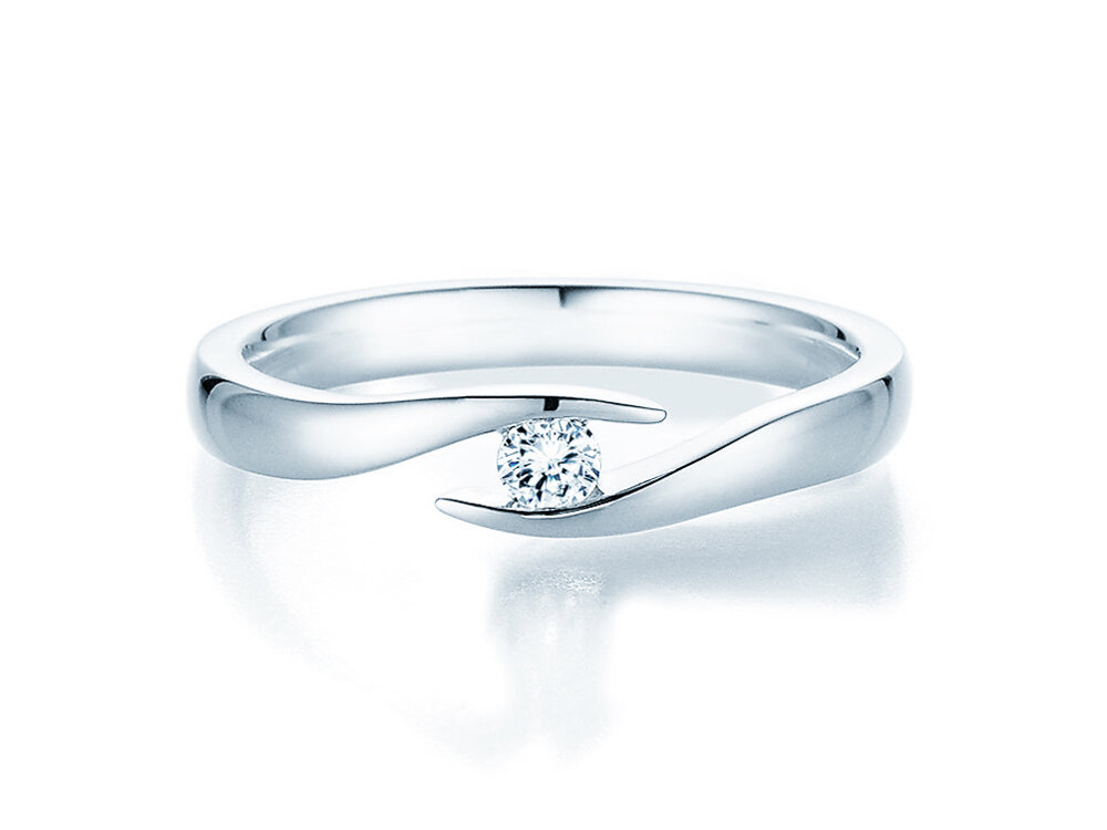 Design élégant, raffiné et unique: la bague tension Twist entoure son diamant comme un inestimable trésor. Nous recommandons l'argent pour cette bague, métal précieux classique pour les bagues de fiançailles. Ajustez la bague à votre budget simplement en choisissant la taille de votre diamant.