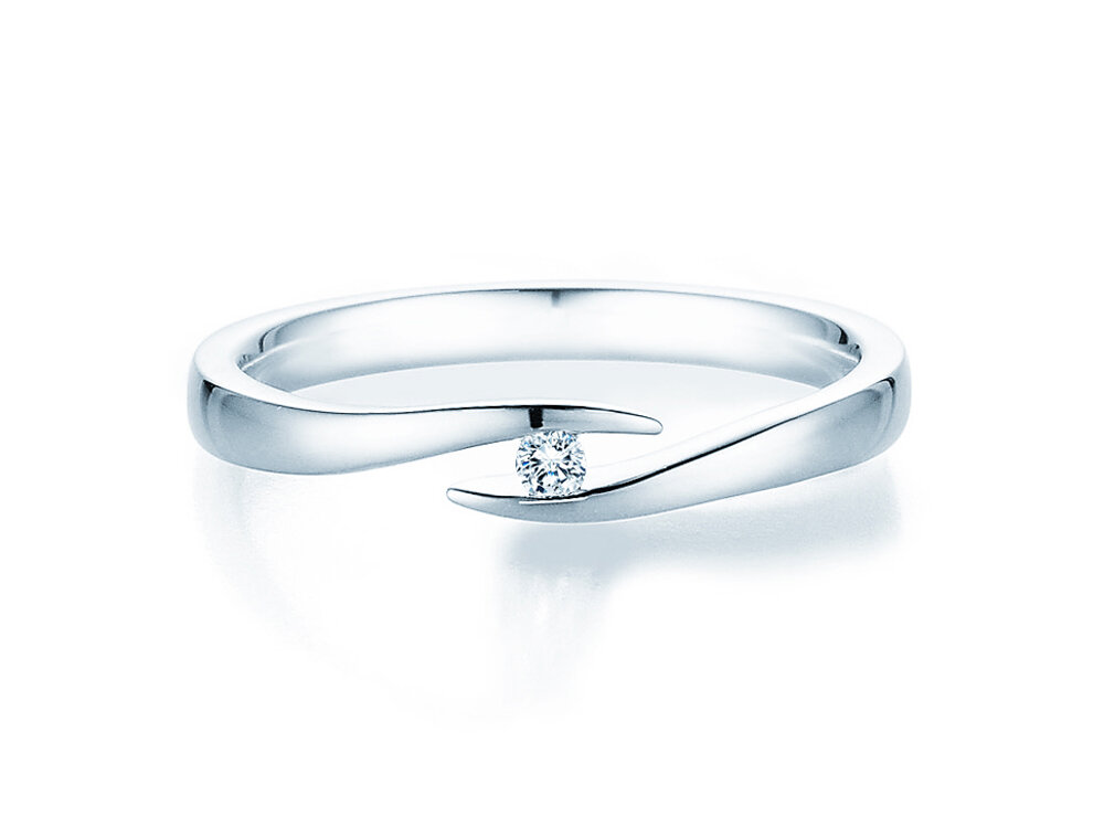 Design élégant, raffiné et unique: la bague tension Twist entoure son diamant comme un inestimable trésor. Nous recommandons l'argent pour cette bague, métal précieux classique pour les bagues de fiançailles. Ajustez la bague à votre budget simplement en choisissant la taille de votre diamant.