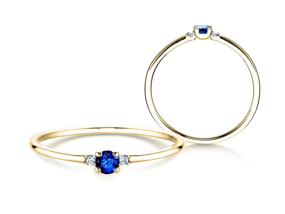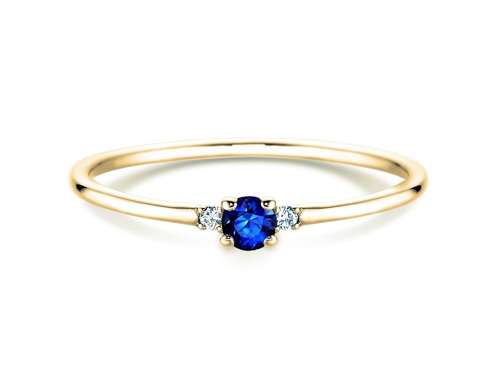 14K or jaune avec saphir 0,08ct et diamants 0,02ct