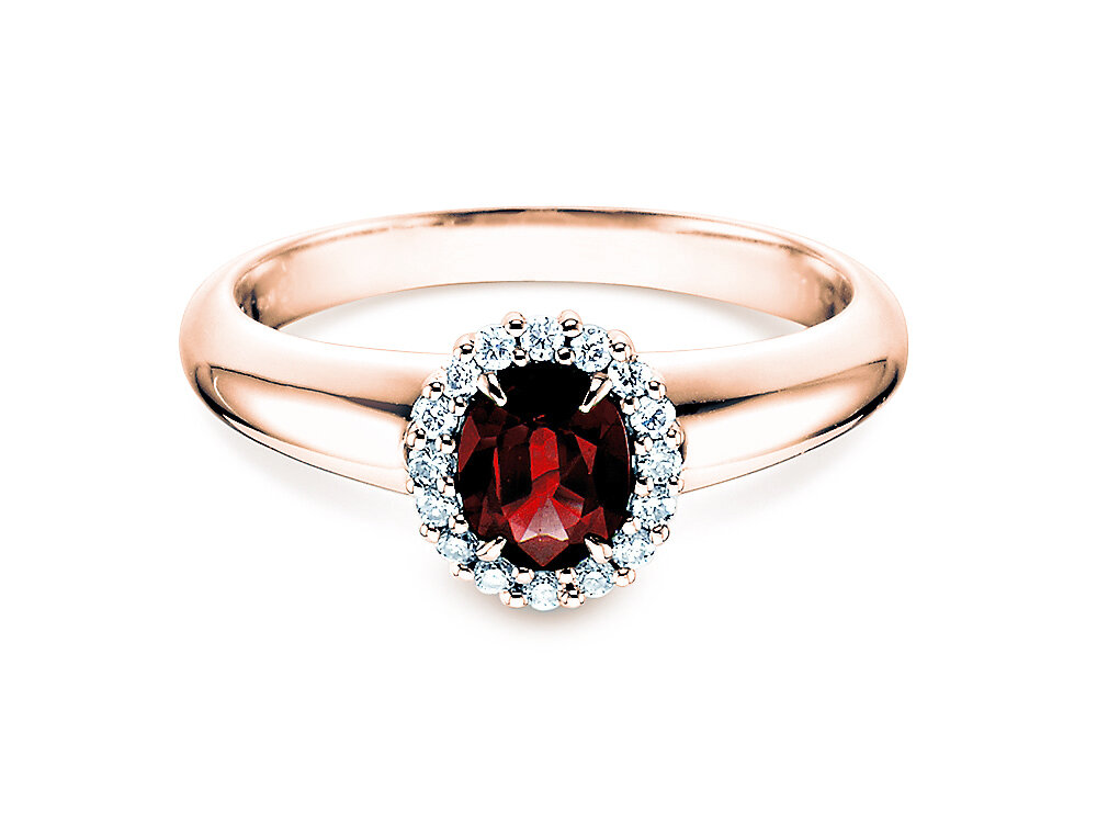 14K or rose avec rubis 0,60ct et diamants 0,12ct