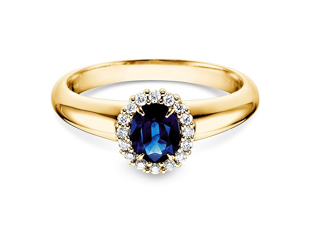 18K or jaune avec saphir 0,60ct et diamants 0,12ct