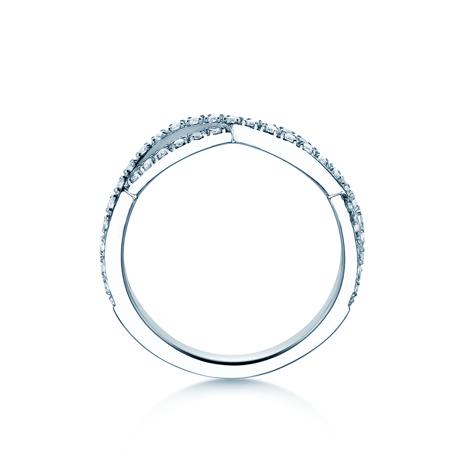 Le motif de tresse à triple entrelacement de diamants du modèle de bague Diamond Curve s'enroule doucement autour de l'annulaire.