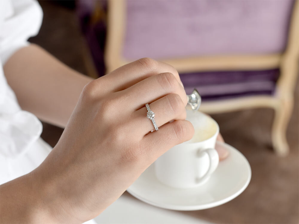 Apprenez-en plus sur les diamants, les bagues, les tailles des bagues et la gravure. En savoir plus sur les bagues de fiançailles dans notre magazine.