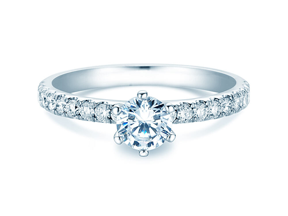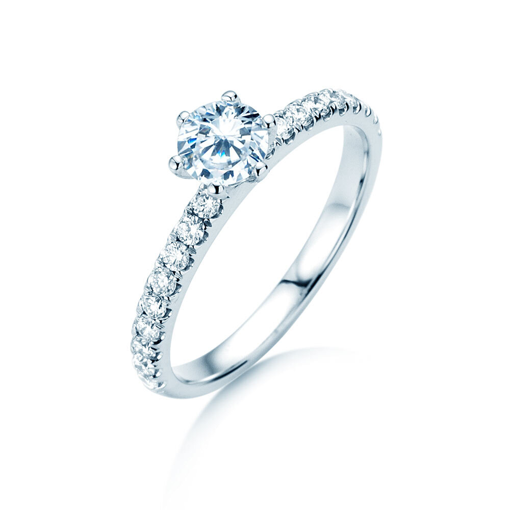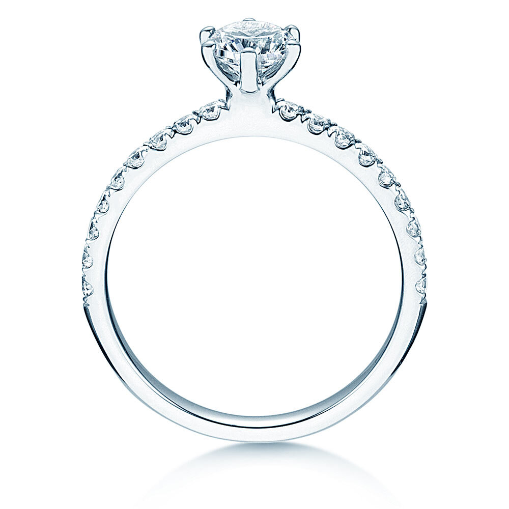 Le rail, riche en diamants, confère au solitaire Classic Pavé son look prestigieux. La bague solitaire Classic pavé est une de nos modèles plus appréciés et, en raison de cela, nous offrons cette bague de fiançailles en trois tailles différentes de diamant selon votre budget.